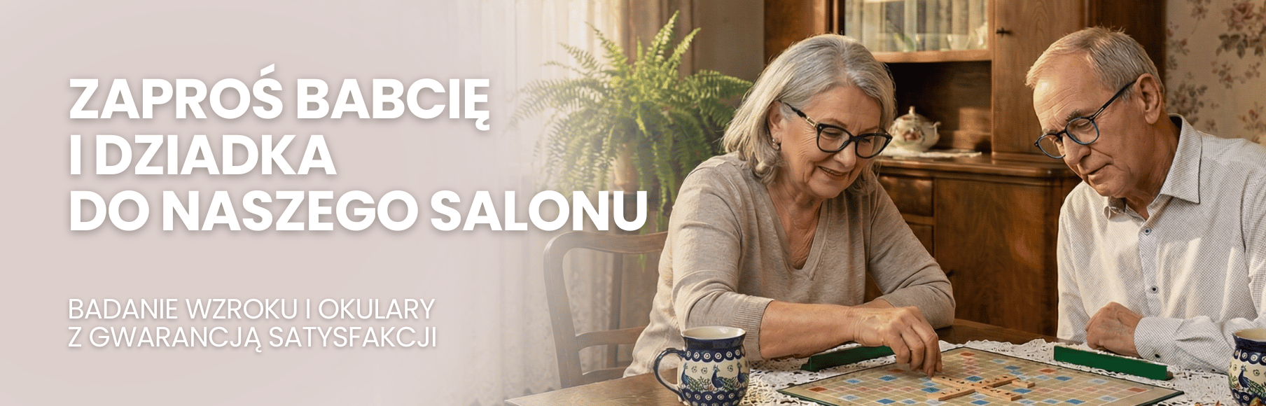Zadbaj o wzrok Babci i Dziadka - bo dobry wzrok to codzienny komfort, bezpieczeństwo i radość z małych rzeczy. Z tej okazji przygotowaliśmy specjalną ofertę łączącą profesjonalną opiekę i pełne poczucie bezpieczeństwa.